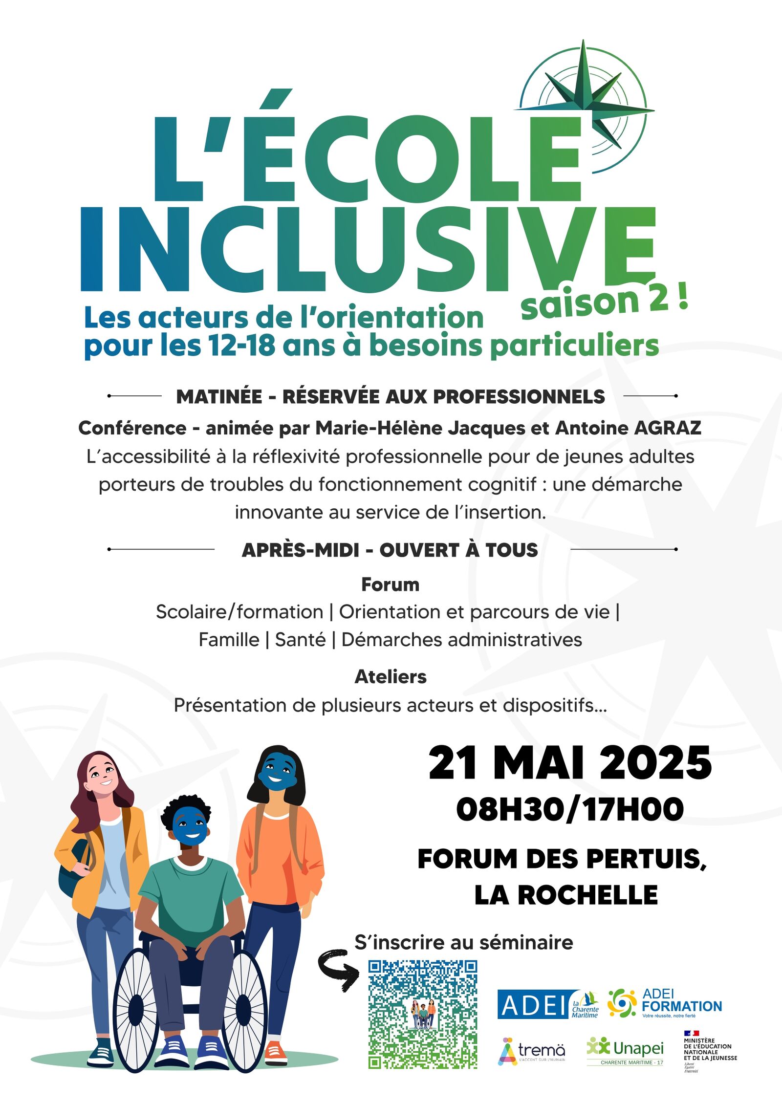 2ème édition de l'école inclusive. Les acteurs de l'orientation pour les 12-18 ans à besoins particuliers. La journée se déroulera en 2 temps : La matinée sera réservée aux professionnels (conférence) et l'après-midi ouvert à tous (+8 ateliers seront animés)